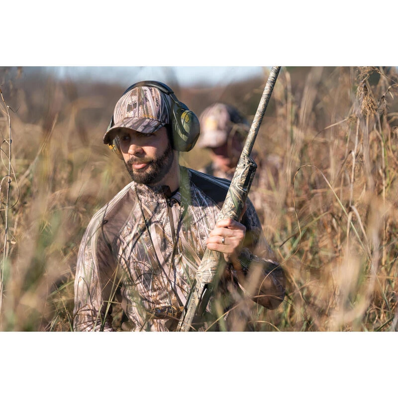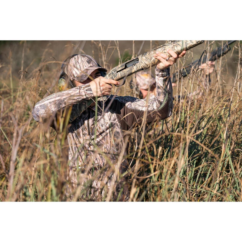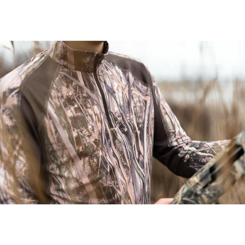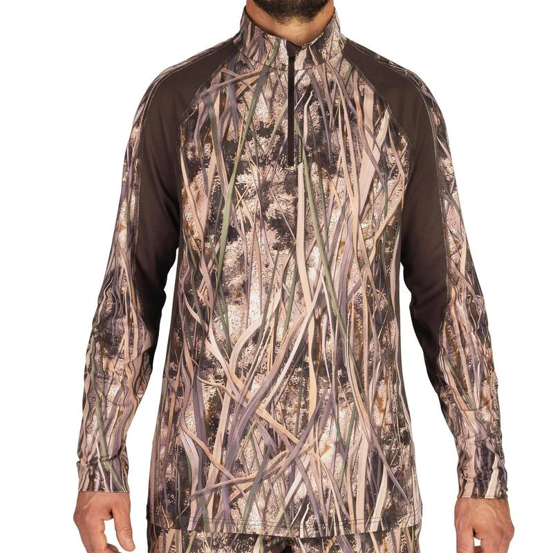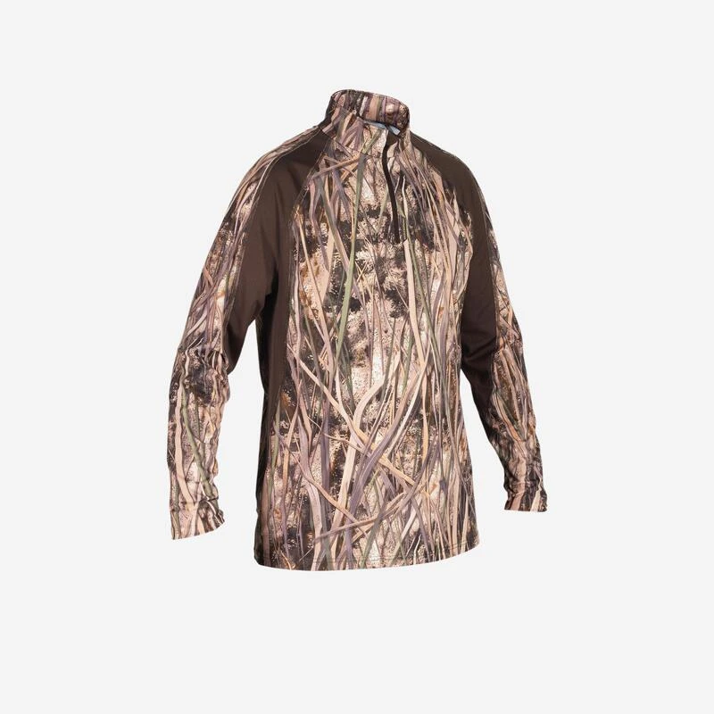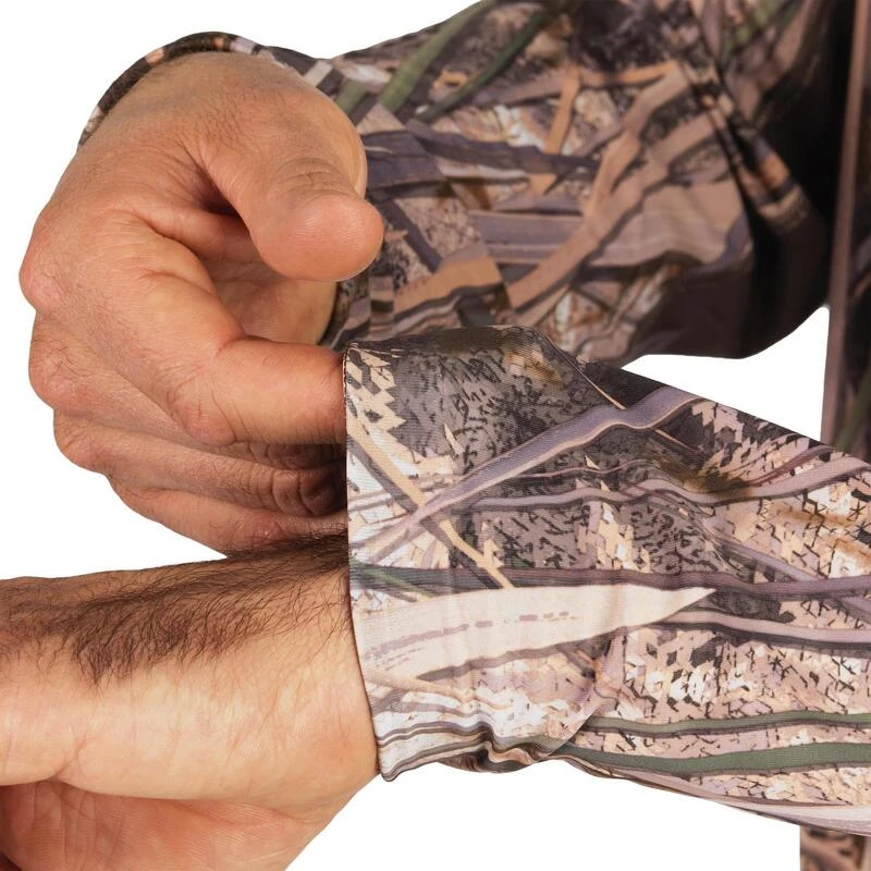 8494124Ons team ontwikkelde dit lichte, ademende T-shirt met lange mouwen voor wie bij droog weer op waterwild jaagt en zich wil camoufleren.Met dit T-shirt in moerascamouflage ga je zo op in je omgeving en ben je superdiscreet. De meshstof zorgt voor een optimale afvoer van transpiratie voor nog meer comfort.